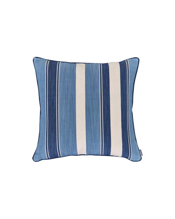 Det stilfulla kuddfodralet Canyon Stripe är tillverkat i kvalitativ och tålig bomullsväv med ett klassiskt mönster i marinblå, vita och aquatonade nyanser från Ralph Lauren. Baksidan av fodralet kompletteras med Newports sandfärgade tyg i polyester, vilket ger en elegant kontrast. Perfekt för inomhusbruk, detta kuddfodral är en del av en unik kollektion av tidlösa och klassiska design från Newport.