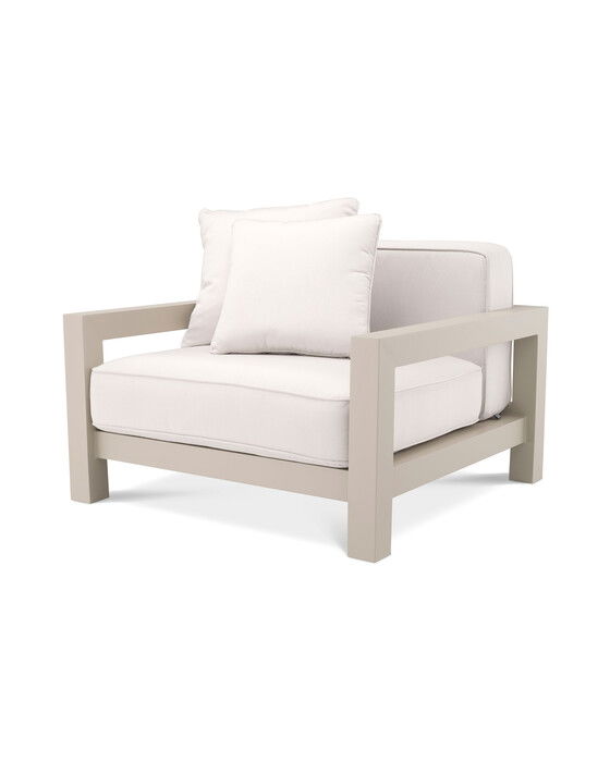 Fåtöljen Cap-Antibes från Eichholtz är en elegant och bekväm utemöbel perfekt för att koppla av på din terrass, uteplats eller trädgård. Med en stomme av aluminium och dynor av 100% sunbrellaakryl, är denna fåtölj både stilren och praktisk för utomhusbruk. Den är lätt att rengöra och kräver minimalt underhåll, vilket ger dig möjlighet att njuta av den i många år framöver.