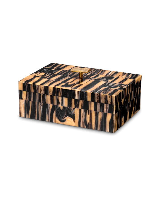 Upptäck sofistikerad stil med Capitola ask från Eichholtz, där lyx möter hantverk. Denna box utstrålar en unik kombination av bruna och svarta nyanser, tillverkad i högkvalitativt resin för en tidlös charm. En idealisk lösning för att förbättra din moderna inredning samtidigt som den erbjuder praktisk förvaring.