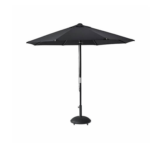 Med parasollen Capri kan du njuta av sommarens solsken samtidigt som du skyddar dig mot den starka solen. Denna stora parasoll är perfekt för att skugga din altan eller trädgård och har en stilren design i djupt svart färg som ger den en elegant touch.