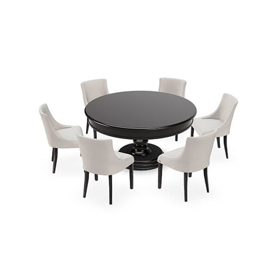 En stilren matgrupp bestående av Cardiff matbord och Addison matstol. Cardiff är ett runt matbord i elegant svart design som erbjuder gott om utrymme för att samla familj och vänner. Addison matstol är en tidlös och elegant stol, tillverkad av noggrant utvalda material för att kombinera kvalitet med design. Med sitt rundade ryggstöd och bekväma stomme är Addison en sofistikerad och lyxig matstol.