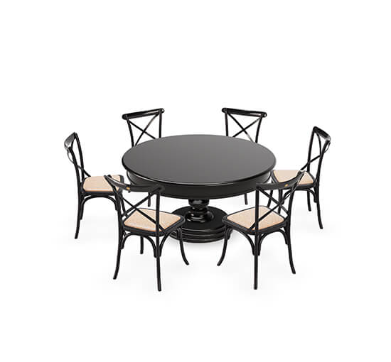 Cardiff matbord med Cross matstol är en modern och stilren matgrupp som erbjuder en elegant design i svart färg. Bordet ger gott om utrymme för att samlas med familj och vänner medan matstolen är tillverkad av exklusiv solid amerikansk ek med sits av traditionell rotting. Inspirerad av populära caféstolar runt om i Europa, är Cross matstol en praktisk och exklusiv möbel.