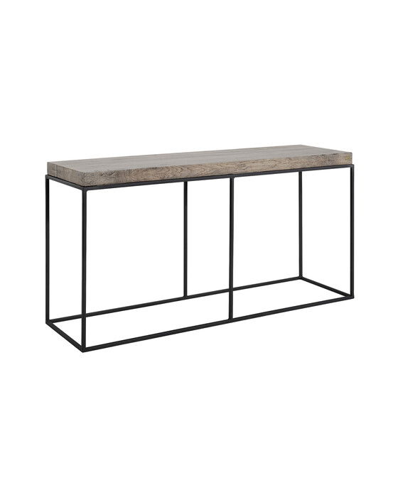 Carlisle är ett stilrent konsolbord från Artwood som har en modern touch. En svart metallram med rena linjer bär upp en generös bordsskiva av massiv ek. Dess naturliga ådring tillför en jordnära känsla och kompletterar ramen fint.