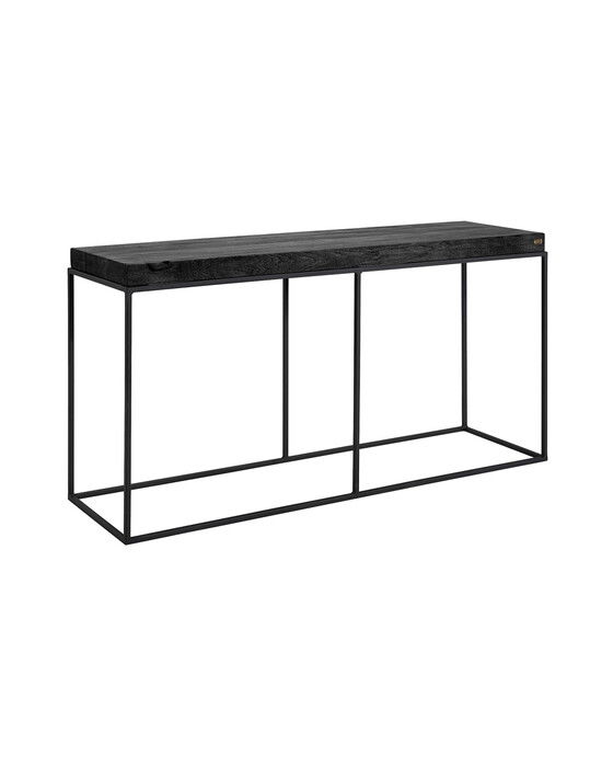 Carlisle är ett stilrent konsolbord från Artwood som har en modern touch. En svart metallram med rena linjer bär upp en generös bordsskiva av massiv ek. Dess naturliga ådring tillför en jordnära känsla och kompletterar ramen fint.