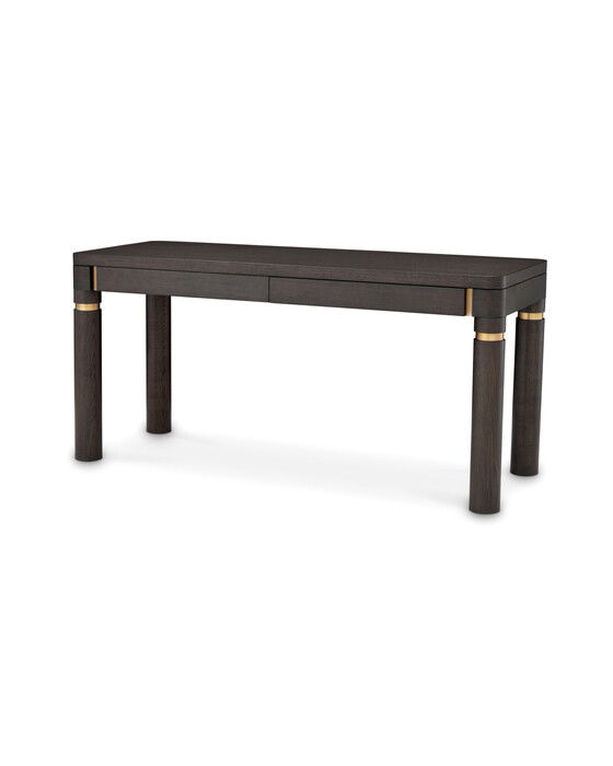 Uppgradera din arbetsplats med det eleganta Carmel skrivbordet, en symbol för lyx och stil. Tillverkad av mocha ekfanér och accentuerad av borstad mässing ger detta skrivbord en varm och elegant touch till din inredning. Med sin rektangulära form och smidiga lådor erbjuder det både stil och funktion.