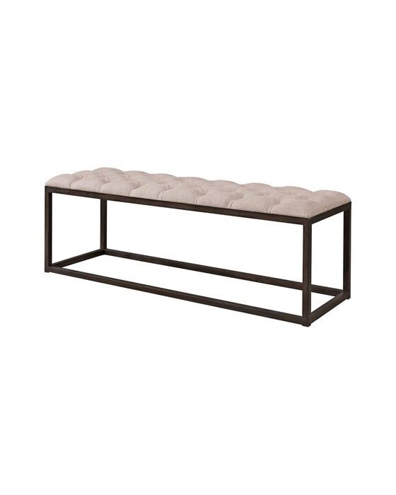 Den stilrena Cayo fotpallen Sophie Linen är en elegant bänk med en stomme av plywood och svart metallram som kombinerar stabilitet med klassisk design. Sitsen är klädd i ett tyg med linneliknande struktur, stoppad med mjuk polyester för extra komfort och dekorerad med ett mönster som ger en touch av stil. Perfekt för hallen, sovrummet eller vardagsrummet, denna tidlösa bänk smälter in i alla inredningsstilar och erbjuder både funktionalitet och skönhet.