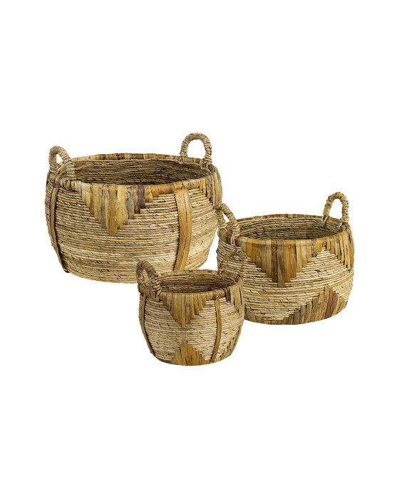 De eleganta korgarna från Artwood är tillverkade av flätade bananblad och kommer i en praktisk uppsättning om tre stycken. Dessa korgar är perfekta för att dölja krukor för växter eller för att användas som förvaring.