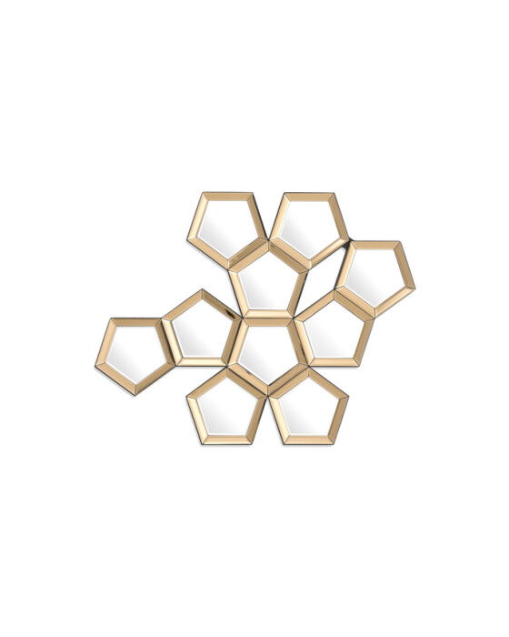 Ge ditt inre en touch av dimension med den vackra Cheyenne-spegeln. Med tio intricat formade femkantiga kluster, varje komplett med en rosa spegelglasram, kommer den att bli ett perfekt tillskott till ditt hem.