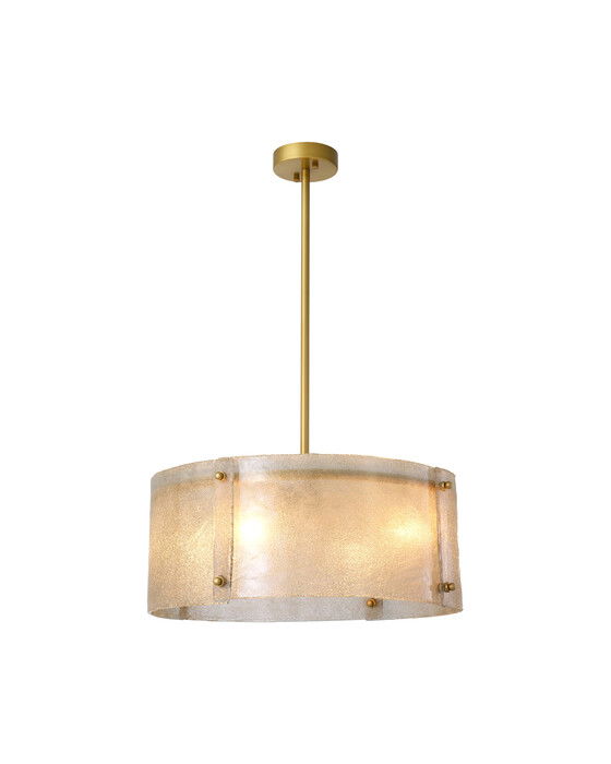 Chiara taklampa i mässing är en elegant taklampa i frostat glas med en stomme av borstad mässing. Den är perfekt att placera över matsalsbordet och signalerar skönhet med sina vackra detaljer. Ljuskällor medföljer ej.