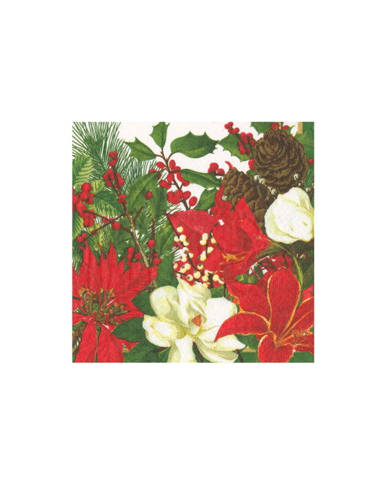 Dessa vackra pappersservetter fångar julens magi med motiv av julens alla blommor – amaryllis, julstjärnor, kottar och bär. Perfekta för att skapa en stämningsfull och färgsprakande dukning under högtiden. Ge dina måltider en elegant och festlig touch med dessa servetter, där varje detalj påminner om julens skönhet.