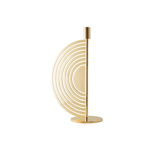 Den eleganta och lekfulla Cirkus ljusstaken i mässing från Klong är en unik design med rörliga halvcirklar som kan anpassas efter eget tycke och smak.