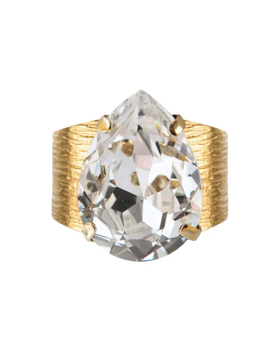 Caroline Svedbom’s classic drop ring features a beautiful drop-shaped crystal. The ring is adjustable to fit your finger perfectly and is made of gold-plated brass.