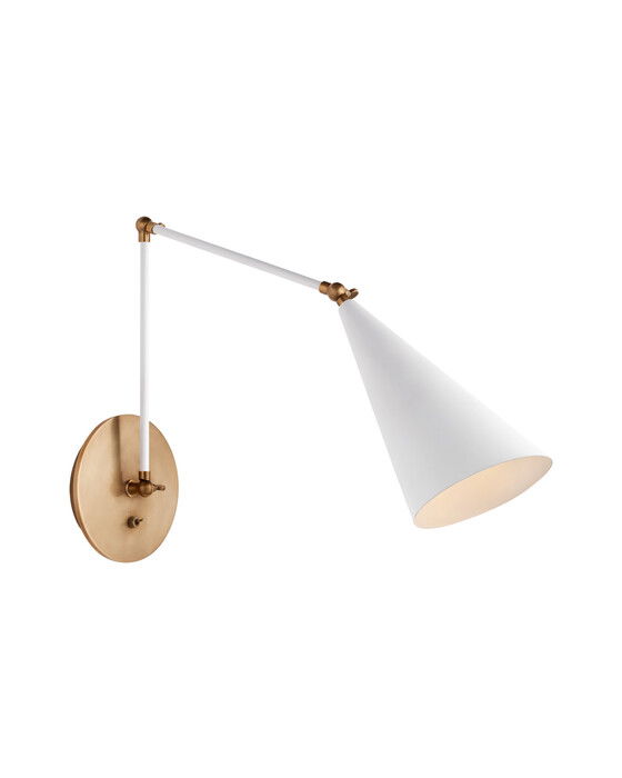 Clemente från AERIN erbjuder vackra vinklar och utsökta detaljer samtidigt som den lyser med elegant enkelhet. Avlånga, koniska skärmar ger en modern touch till en design från mitten av århundradet med armaturens antika mässingsfinish. Varje korridor eller bibliotek kommer att förbättras med Clemente, särskilt bakom en favorit-fåtölj.