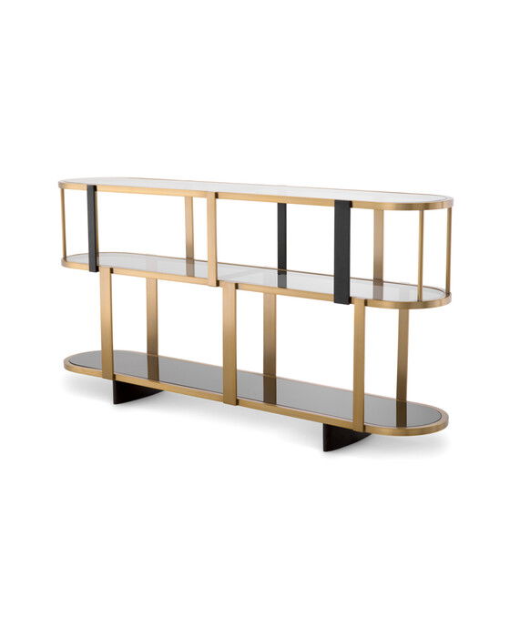 Utforska Eichholtz’s exklusiva hylla Clio, tillverkad i borstad mässing och stilren glasdetaljer. Med en rund form och en elegant design blir denna hylla en lyxig touch till ditt hem. Låt Clio bli en del av din inredning och skapa en sofistikerad atmosfär.