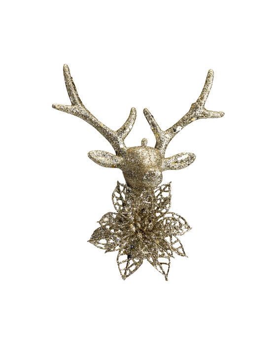 Ge din julgran en skimrande detalj med denna eleganta ren i champagnefärgat glitter. Denna vackra dekoration lyser upp julgranen och förmedlar både lyx och festlig stämning, perfekt för att skapa en magisk och sofistikerad julkänsla i ditt hem.