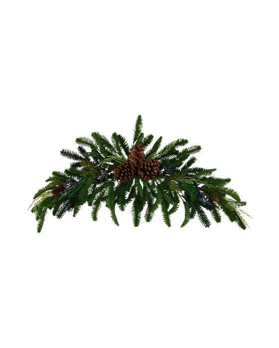 Dekorera ditt hem med en naturligt vacker julstämning med denna grandekoration som är 110 cm lång. Perfekt för att placeras ovanpå en tavla eller dörrkarm och skapa en subtil, elegant julkänsla. De konstgjorda grankvistarna, stora kottar och blåbärsdetaljer ger en rustik och klassisk look som passar alla hem.