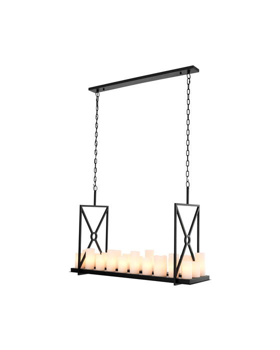 Skapa en varm och välkomnande atmosfär med taklampan Commodore från Eichholtz. Den stämningsfulla taklampan har 22 stycken blockljus i resin med 4 stycken LED-lampor som riktar ett ljus neråt. En fjärrkontroll medföljer vilket gör att du enkelt kan tända och släcka lampan, men även andra inställningar finns. Taklampan är inte dimbar och kan därför inte användas med en dimmer.