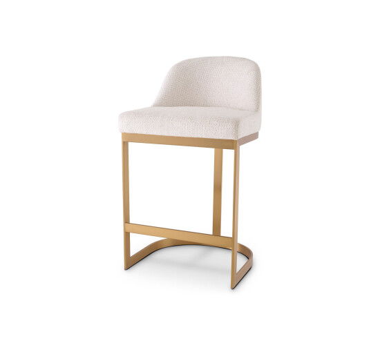 Condos är en elegant och stilfull barstol i den sobra nyansen lyssa off-white. Stolens stomme har en vacker borstad mässingsfinish, vilket ger en touch av sofistikation till vilken bardisk eller köksområde som helst.