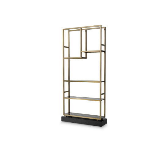 Corrado I hylla borstad mässing är en elegant och sofistikerad möbel som förenar borstad mässing med rökfärgat glas i en skulpterad design. Denna svarta hylla ger en touch av storslagenhet och smälter sömlöst samman modernitet med tidlös elegans. Perfekt för den kräsna connaisseuren som vill höja sin omgivning med en bit som utstrålar raffinerad smak och extraordinär elegans.