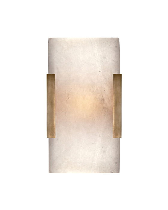 Den eleganta Covet Wide Clip badrumsbelysningen i mässing från Visual Comfort är en del av Kelly Wearstlers Covet-serie. Serien kombinerar alabasterns naturliga skönhet med metalldetaljer i olika ytmaterial, vilket ger en enkel och poetisk elegans till ditt badrum. Med minimalistiska former och organisk design, är denna belysning ett måste för alla som vill skapa en stilfull atmosfär.