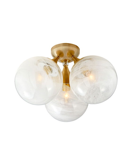 Den eleganta Cristol plafondlampan i antik mässing från Visual Comfort är en perfekt balans mellan gammal charm och modern design, vilket gör den till en utmärkt belysning för olika interiörer.