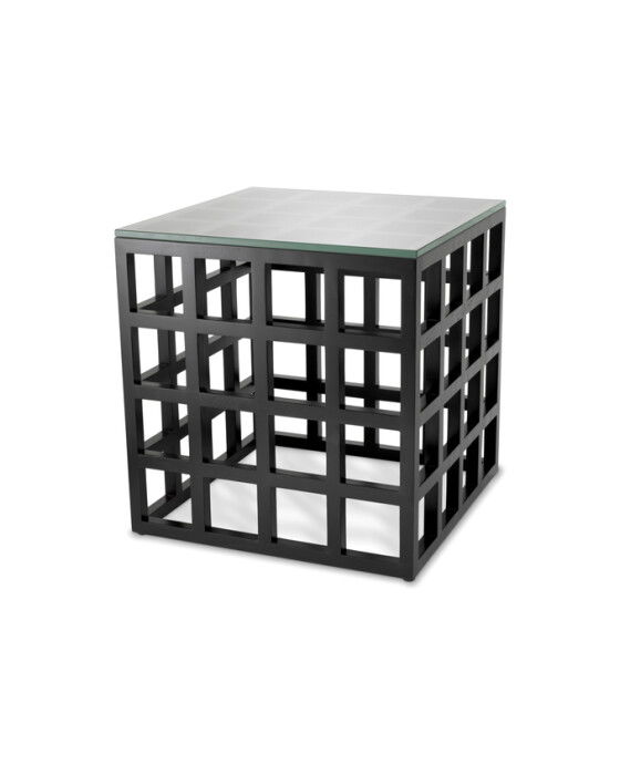 Upplev den lyxiga lockelsen av Eichholtz Cubico sidobord. Detta exklusiva stycke har en klassisk svart finish och en unik geometrisk bas i stilren svart glas, vilket inkarnerar en perfekt blandning av modern sofistikering och tidlös elegans. Detta sidobord utgör en idealisk showcase för dekorativa föremål eller en stilfull yta för din favoritdryck. Det är mer än bara en möbelsolution; det är en ikonisk uttalande om stil och lyx.
