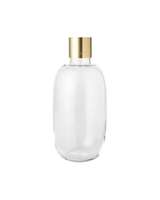 Skultuna och designern Emma Olbers har skapat Damejeanne vaserna, inspirerade av äldre Damejeannevaser med stor volym och flätad korg för att skydda innehållet. Undvik att placera glasvasen i direkt solljus för att undvika brännmärken på underlaget.