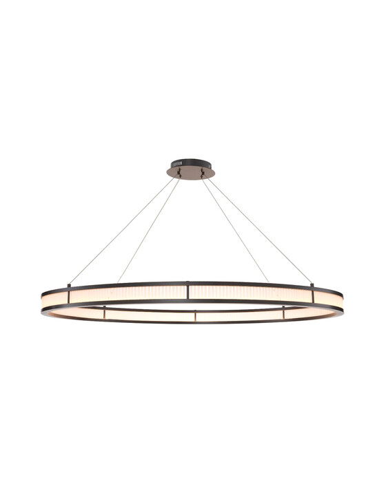 Elegant och extravagant taklampa från Eichholtz, perfekt för att lysa upp ditt hem med stil. Denna taklampa har en unik design med en ring i frostat glas och en ram i bronsfinish. Den är idealisk att placera i matsalen över middagsbordet eller i hallen för att skapa en välkomnande atmosfär som sticker ut.