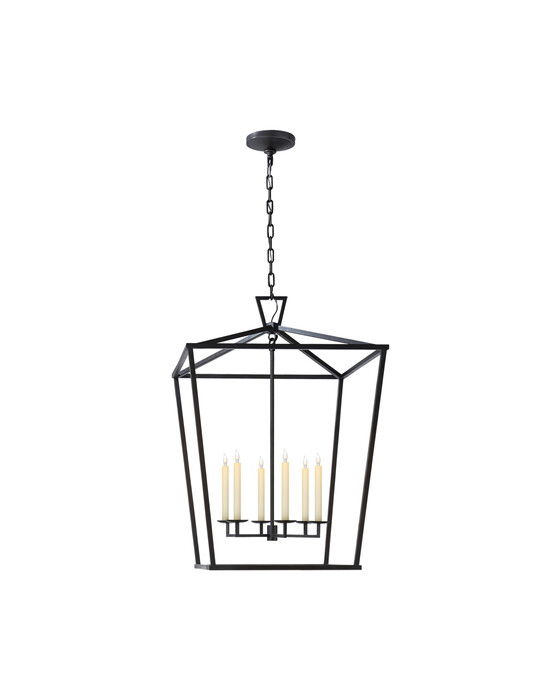 Den eleganta Darlana taklampan i svart XL från Chapman & Myers kombinerar klassiska proportioner med en modern twist. Med en öppen stålram och en distinkt triangulär upphängning ger den en touch av elegans till din inredning.