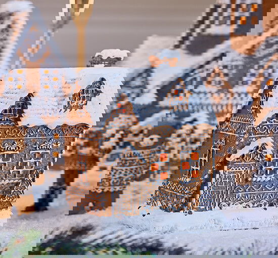 Skapa julstämning med Darlington pepparkakshus, ett charmigt hus inspirerat av viktoriansk arkitektur med detaljerad frosting och glitter. Perfekt för att skapa en magisk vinterby tillsammans med andra hus i vår Gingerbread House Collection.
