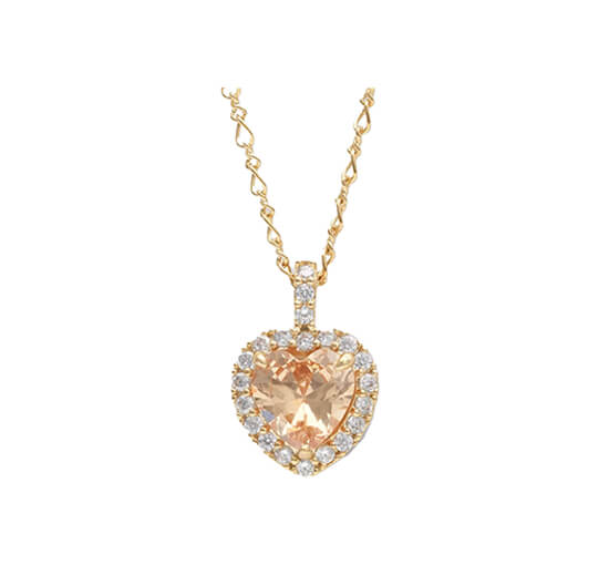 Skapa en elegant känsla med detta hjärtformade halsband inramat med små klara kristaller. Halsbandet kommer i en vacker champagnefärg och kompletteras med guldplätering som ger en stilfull och tidlös look.
