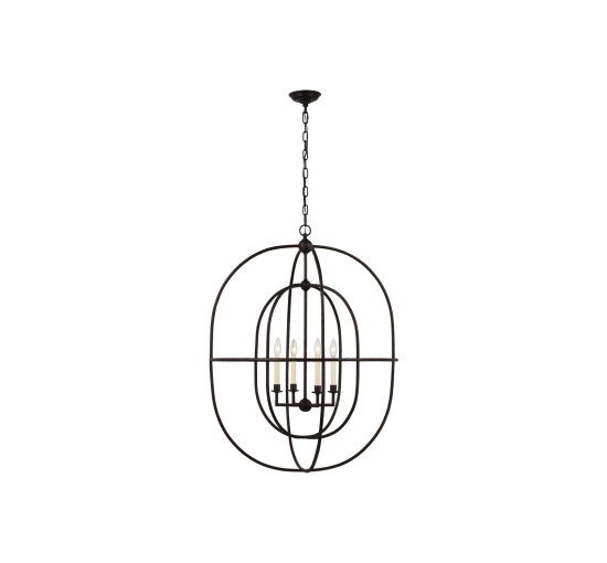 Desmond taklampa dubbel svart är inspirerad av Diego Giacomettis möbelstil och designad av Chapman & Myers. Med en öppen, rundad bur i åldrat järn eller förgyllt utförande omger denna taklampa en central kandelaber för en dynamisk design som drar uppmärksamhet i alla rum.