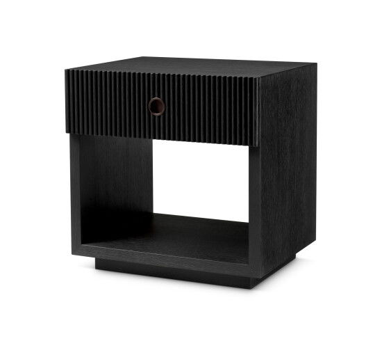 Dimitrios sängbord är en stilfull möbel som lyfter din inredning till nästa nivå. Med en elegant yta i charcoal grey och ribbade träpaneler kombinerat med detaljer i bronsfinish, skapas en vacker kontrast som förenar elegans och funktion. Perfekt som nattduksbord eller sidobord, tillför Dimitrios en känsla av lyx och modern design som harmonierar med sofistikerade interiörer.