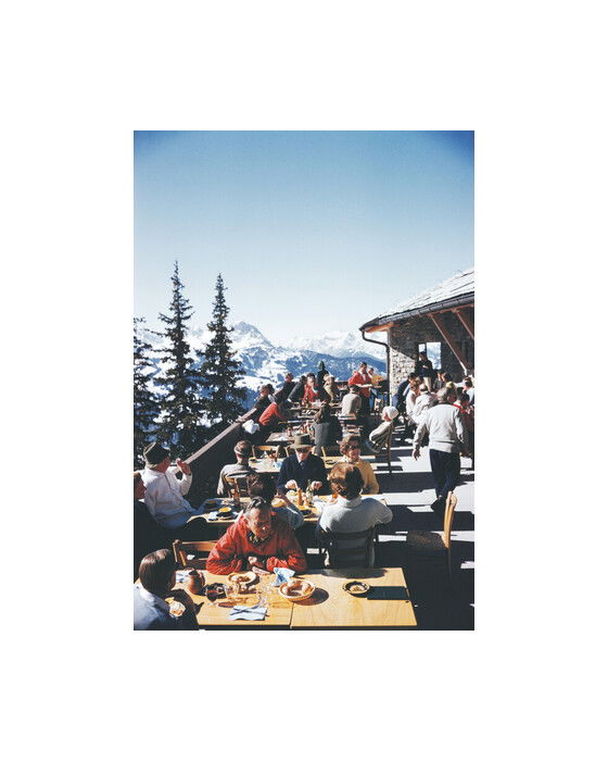 Upplev elegans och historik med Slim Aarons’ fotografi ’Holidaymakers at a ski lodge at Gstaad, Switzerland, March 1961’. Välj mellan olika leveransalternativ för att skapa den perfekta presentationen för ditt hem eller kontor.