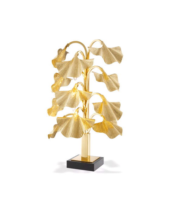 Donati är en unik bordslampa inspirerad av växtriket, med blad i mässing som ger den en tropisk elegans. Lampan står stadigt på en fot av svart granit och har en vacker finish i mässing. Den har plats för 3 glödlampor med storlek E14 på sockeln. Denna outlet-vara finns i begränsad kvantitet och kan ha mindre slitage eller repor, men inga större skador.