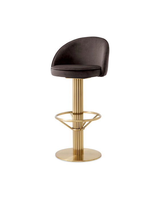 Elevate your living space with the sophisticated Bar Stool Dorland. This luxurious Eichholtz furniture piece features a brushed brass finish and a roche dark grey velvet seat with a swivel base, perfectly blending elegance and functionality. Ideal for your kitchen or bar area, this exclusive stool exemplifies Eichholtz’s commitment to iconic design and exceptional craftsmanship.