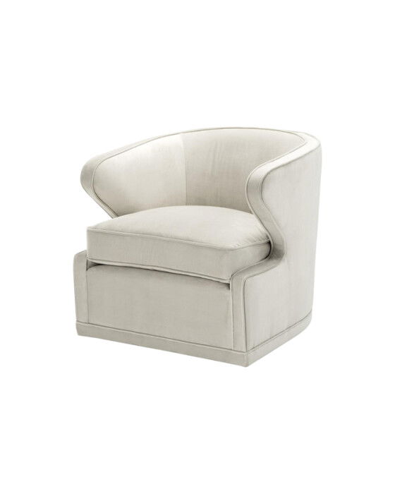 Den snygga Dorset fåtöljen i färgen pebble grey från Eichholtz är en elegant och stilren möbel med svängbar bas.