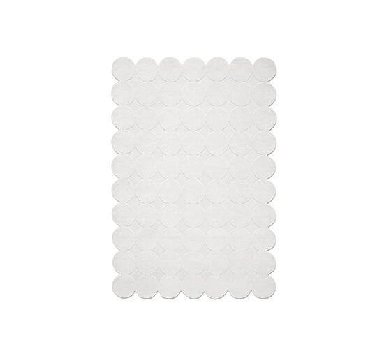 Upptäck elegans och unik design med denna tuftade vita matta. Mattan skapar en visuell dynamik med sina höga och låga partier, där varje cirkel är försiktigt förhöjd. Cirkelmönstret sträcker sig ända ut i kanten, vilket ger en imponerande effekt. Dots-mattan ger rummet en modern och stilfull touch.