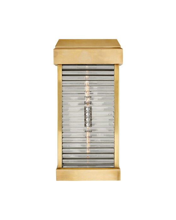 Den eleganta Dunmore Curved Glass Louver vägglampan i mässing är en perfekt mix av stil och funktionalitet. Med sin antika-brända mässingsfinish och klar glasskärm ger den en elegant touch till alla rum.
