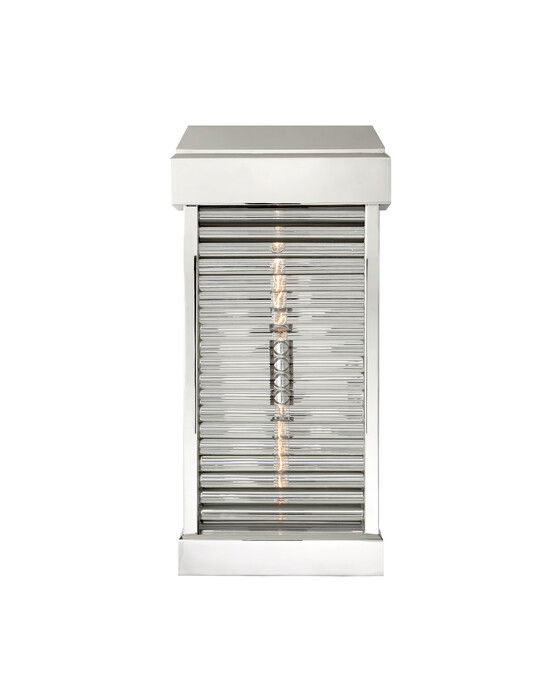 Den eleganta Dunmore Curved Glass Louver vägglampan i nickel med klar glass är ett stilrent tillskott till ditt hem.