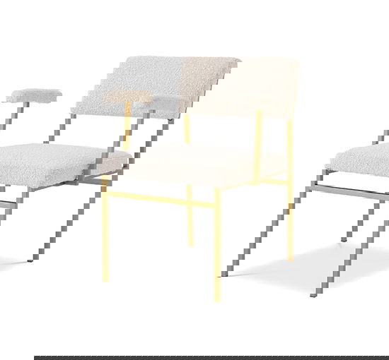 Inred din matplats i modern stil med matstolen Dunmore från Eichholtz. Stolen har en snygg stomme i borstad mässing och det mjuka sitt- och ryggstödet har en klädsel i krämfärgad bouclétyg. Dunmore är en elegant matstol som bjuder in gästerna till att sitta länge.