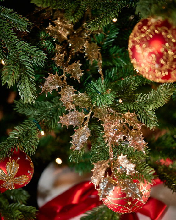 Durand är en glamourös järnekskvist täckt i champagnefärgat glitter. En elegant kvist perfekt att sätta i ett vackert jularrangemang eller att dekorera julgranen med för en glittrande julkänsla. Säljes styckvis.