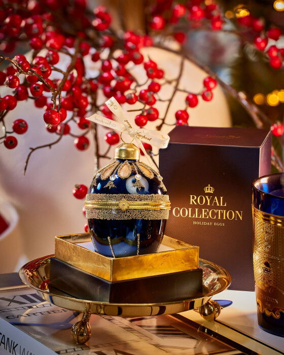 Dekorera julgranen med stil med denna vackra Edward fabergéägg i mörkblått. Ett detaljrikt och glittrande ägg som tillför en exklusiv touch till din julgran.