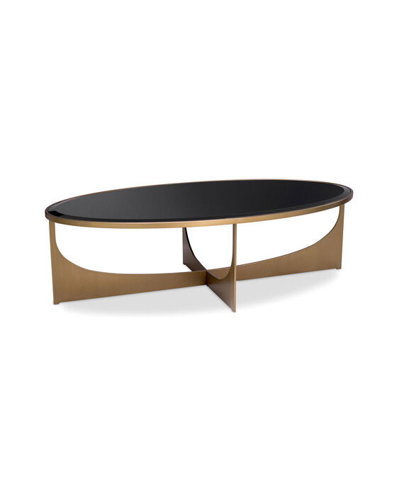 Elegance soffbordet kombinerar stil och elegans med en exklusiv känsla som lyfter upp vilket rum som helst. Den ovala bordsskivan i svart glas harmonierar perfekt med ramen och benen i borstad mässingsfinish.