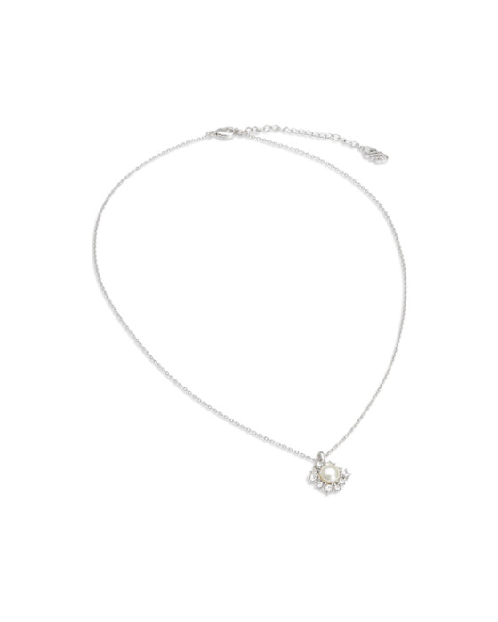 Emily pearl halsband ivory är en klassisk och elegant smyckesdesign med en silver finish och en vacker pärla i elfenbensfärg omgiven av mindre kristaller. Det är ett stilrent halsband som passar perfekt att kombinera med andra smycken ur Lily And Rose kollektion.