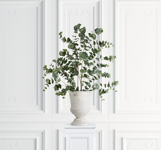 Denna konstgjorda eucalyptus i en kruka är en perfekt inredningsdetalj för att skapa en naturtrogen känsla i ditt rum. Med en höjd på 110 cm ger denna ståtliga konstväxt en botanisk touch till din inredning.