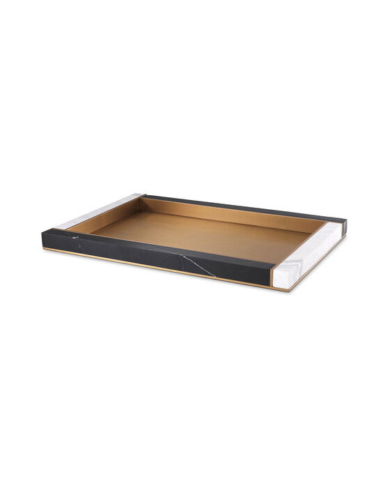 Brickan Farrell från Eichholtz är förmodligen en av de elegantaste brickorna du någonsin sett. Brickans antika yta i mässing med upphöjda kanter samt vita och svarta marmor skapar en lyxig känsla. Denna dekorativa bricka höjer vilken inredning som helst.