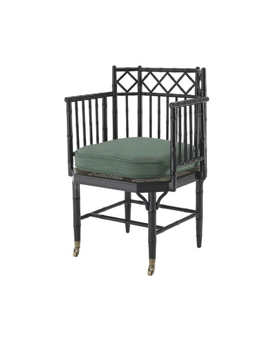 Den eleganta fåtöljen Xavier med grön dyna är en perfekt kombination av stil och komfort. Med sina generösa dimensioner passar den både i vardagsrummet och i läshörnan.