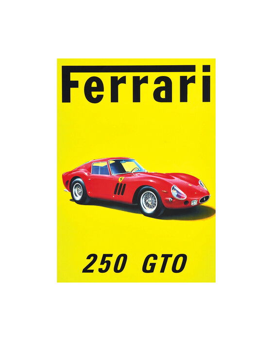 En ikonisk hyllning till Ferrari 250 GTO, ofta betraktad som en av världens mest eftertraktade och vackraste bilar. Detta motiv framhäver bilens eleganta linjer och intensiva röda färg mot en djärv gul bakgrund, vilket skapar en slående och klassisk kontrast. Perfekt för bilentusiaster och Ferrari-samlare som uppskattar tidlös italiensk ingenjörskonst och stil.