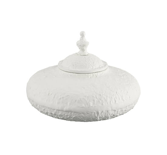 Den eleganta Fiora asken i elfenbensfärg passar perfekt som en dekorativ detalj i ditt hem. Med sin runda form och strukturerade yta ger den en touch av lyx till vilket rum som helst.